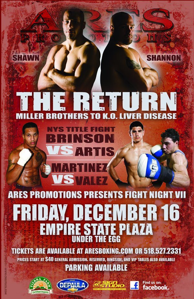 The event goes down on Friday, December 16th. Tickets can be purchased at AresBoxing.com or by calling (518) 527-2331. Prices start at $40 for General Admission with floor, ringside, and VIP tables also available.