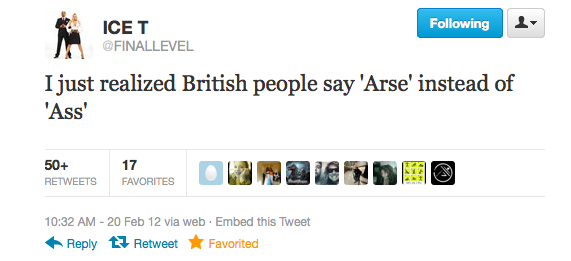 “My God, it’s full of stars…” – Ice T after hearing a British person say “arse” instead of “ass”