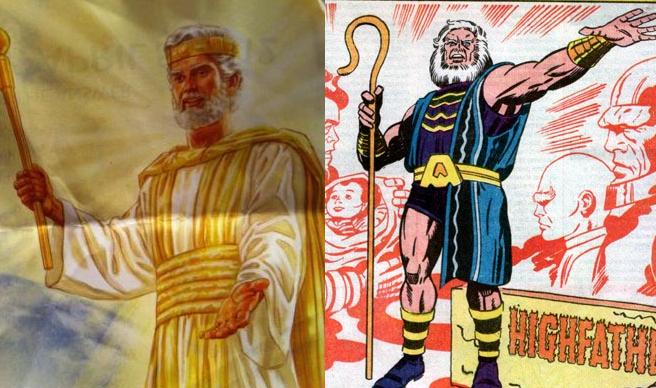 A friend of mine has, of late, become a preferred destination for the Jehova’s Witnesses in her neighborhood. The latest pamphlet offers an…interesting re-imagining of the image of Jesus Christ that I haven’t seen before. Being a comic book geek, I couldn’t help but immediately recognize its resemblance to Highfather of The New Gods, created by Jack Kirby.